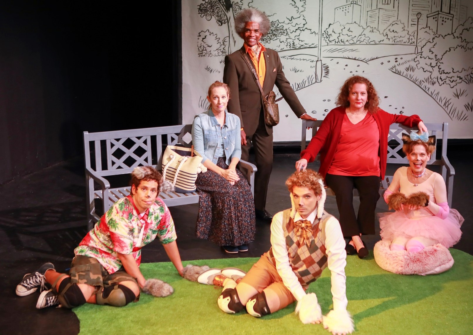 And Susan Huckle portrays Rose, the new-to-New-York submissive wife who talks endlessly to keep herself company while searching for a human friend to really care about what happens to her. Peter Pasco runs around as her ignored and ill-mannered Mutt Drac who reaches out to the other two dogs in the park for companionship. It’s heartwarming to watch as Rose and Arlene become friends, especially as Rose starts learning Yiddish (very badly) after being invited to Arlene’s temple one night. Has Rose finally found her chosen family? But poor Drac (named by Rose’s equally ill-mannered son) does not fit into how she decides to live her life after her husband leaves. Drac’s heartbreaking loneliness will pull at your heartstrings and then make you sigh will relief when he tells Lucille that cuddling with her in the park “feels like home,” something the poor mutt has never really known before.