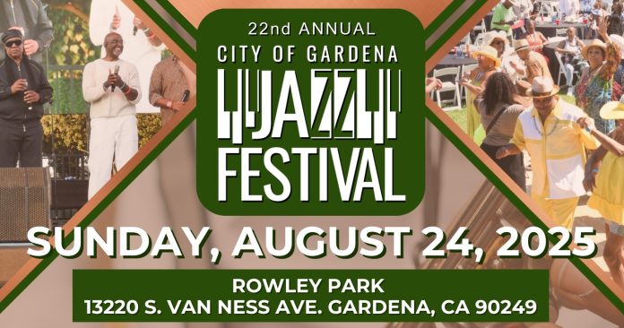 The event takes place at Rowley Park, 13220 S. Van Ness Ave., Gardena on Sunday, August 24, Gates open at 9 a.m. and close at 7 p.m. The City asks that you do not line up at the entrances prior to 8 a.m. All festival attendees, bags, and coolers will be screened prior to entrance into the festival. Clear bags are recommended. General admission is $30, a box seat is $75, and a reserved table seat is $100. Visit gardenajazzfestival.com for more information.
