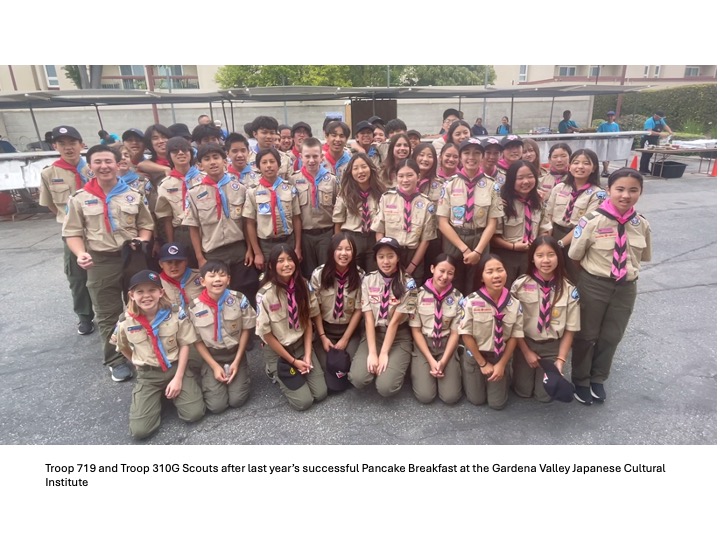 “For over 60 years, in what has become a yearly Spring tradition, this Torrance based Scout Troop has served the community a classic pancake breakfast including eggs, juice, coffee, and ham; prepared by the Scouts and Scout parents at the Gardena Valley Japanese Cultural Institute (1964 W. 162nd St. Gardena, CA 90247),” a statement reads. “Guests can enjoy their breakfast in a dining hall or can take-out where Scouts can assist guests to take their breakfasts to their cars.”