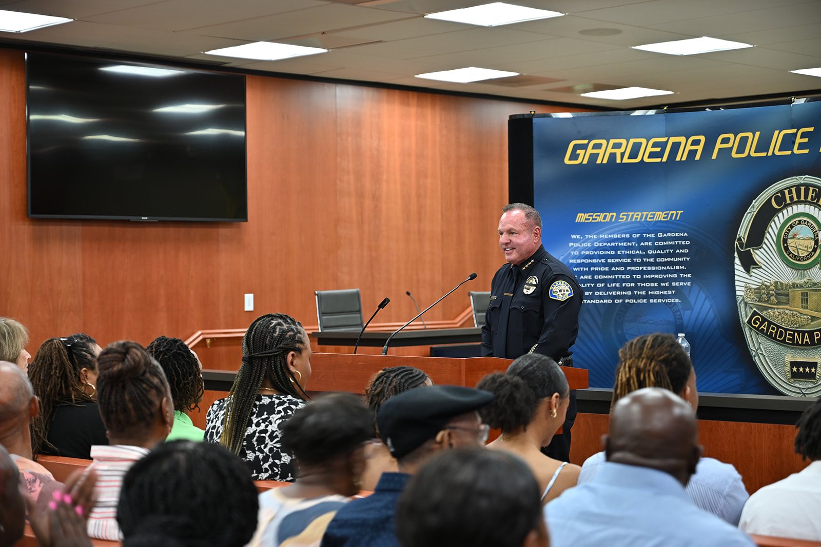 I’m a little different. Community is very important to me, and I too am attending events and stuff like that. We have these community events, and they get to know us, and it’s nice, but I also hear community members wanting to know what we’re doing to combat the catalytic converter thieves or the car thieves or the burglars, or the crimes that are occurring in the city. So I am getting us focused on what the initial thing is for law enforcement, and that is to fight crime and be visible to our community members. They want to see the police cars up and down their streets in the residential areas, and I intend on making that happen. I would say that our officers are eager to to get out there and to prevent crime, to keep the city of Gardena safe, have the community members feel safe, that we listen to them, and that we care about, whether it’s property crimes or quality of life, and of course, crimes against persons.